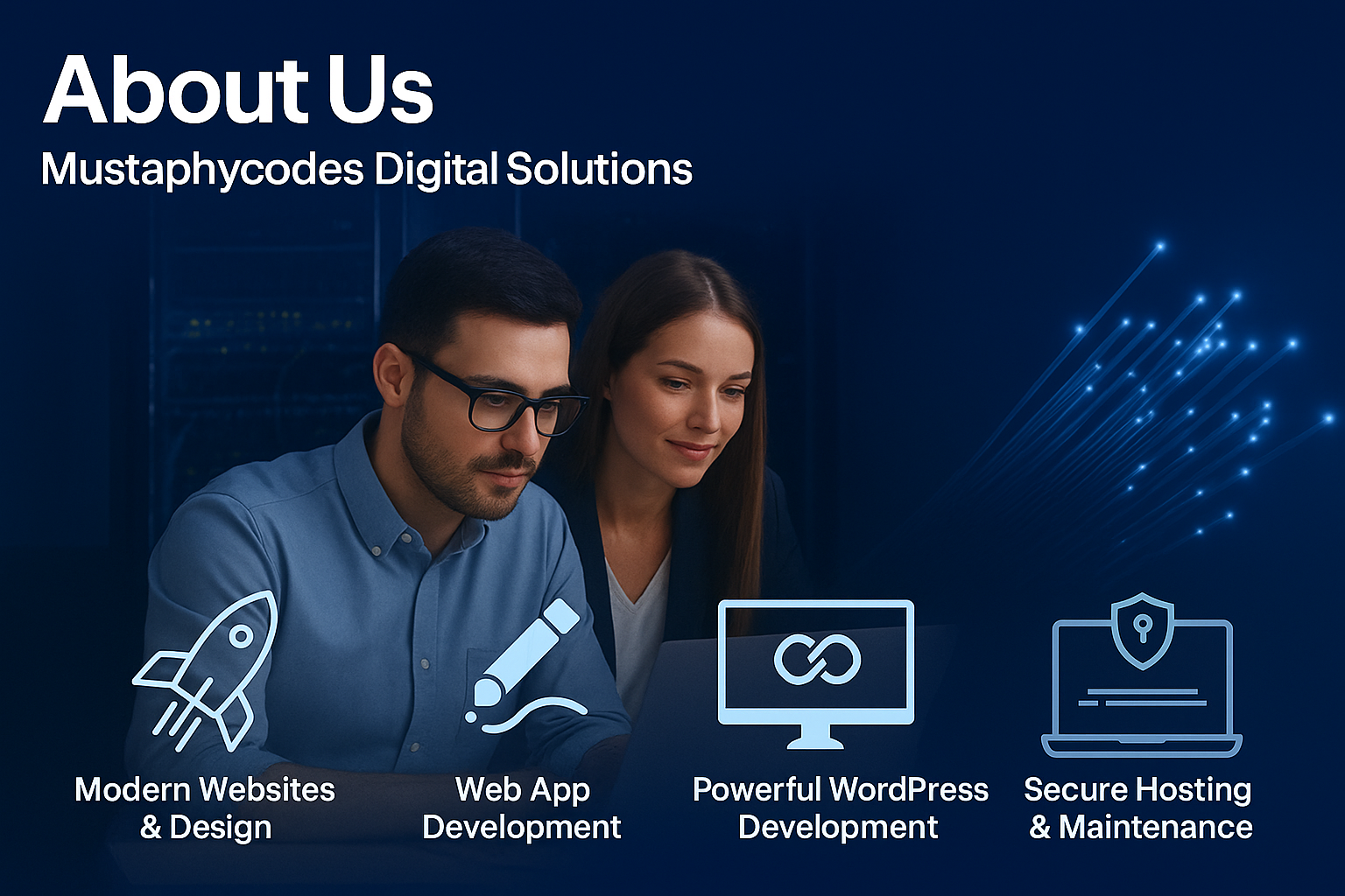 At Mustaphycodes Digital Solutions, we are passionate about transforming ideas into powerful digital experiences. Founded on innovation and driven by results, we combine creativity with cutting-edge technology to deliver solutions that are both visually stunning and functionally powerful. From startups to established enterprises, our mission is to help every client achieve growth through smart, scalable, and reliable digital solutions.